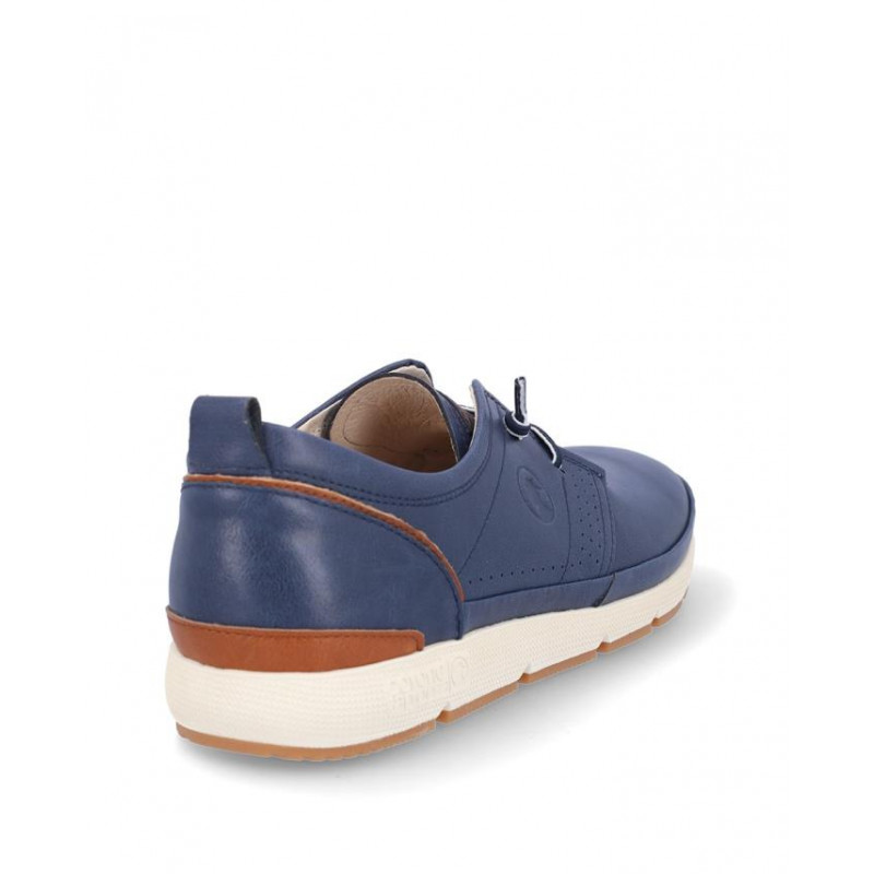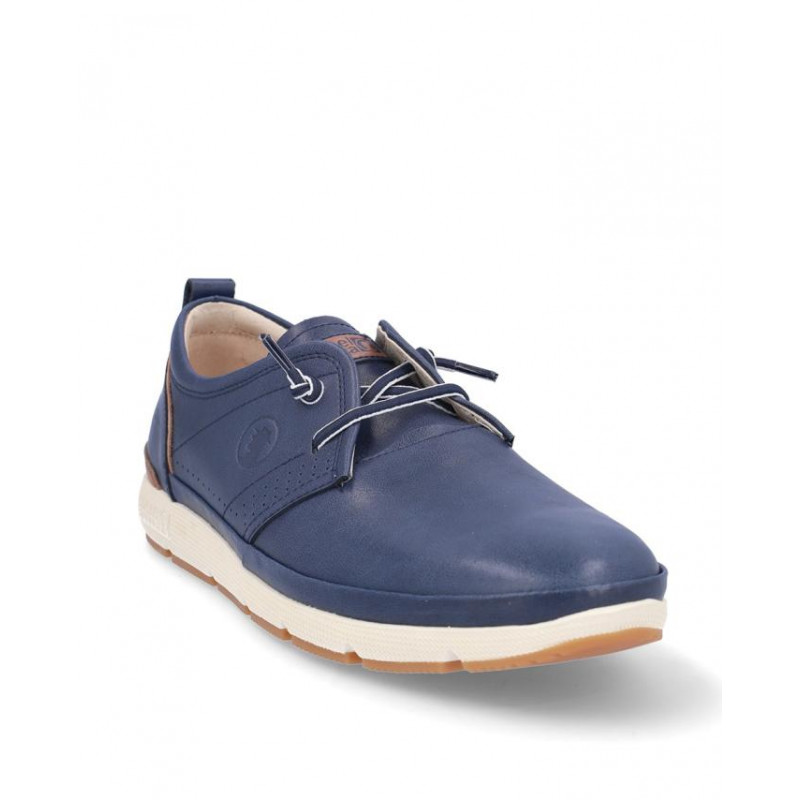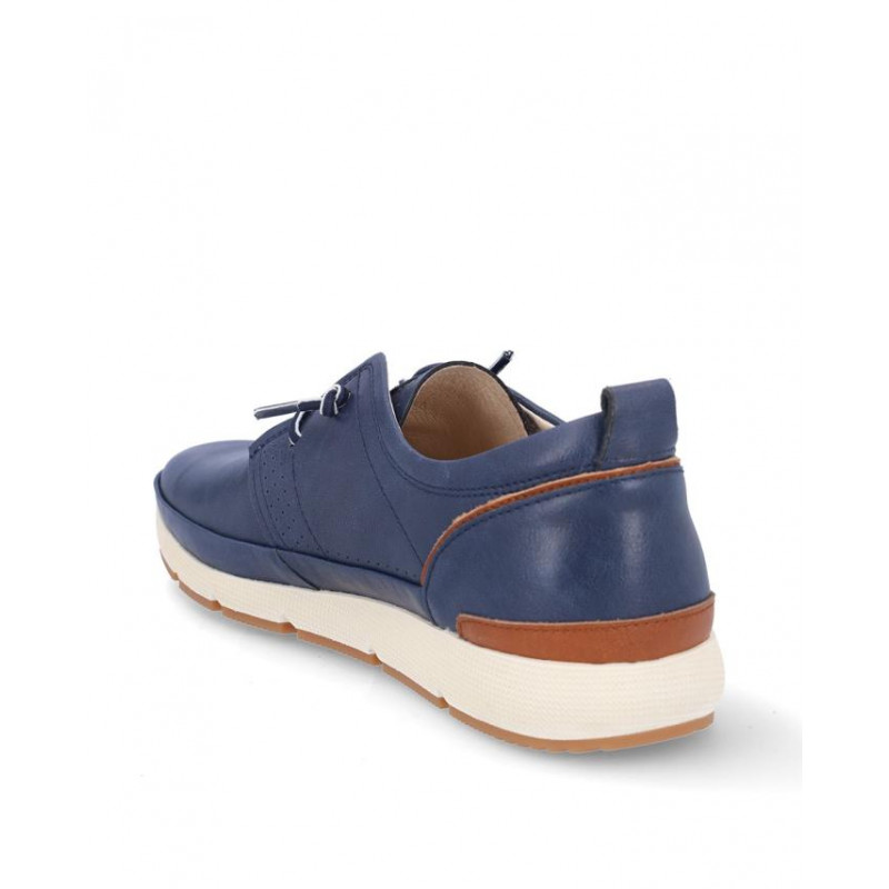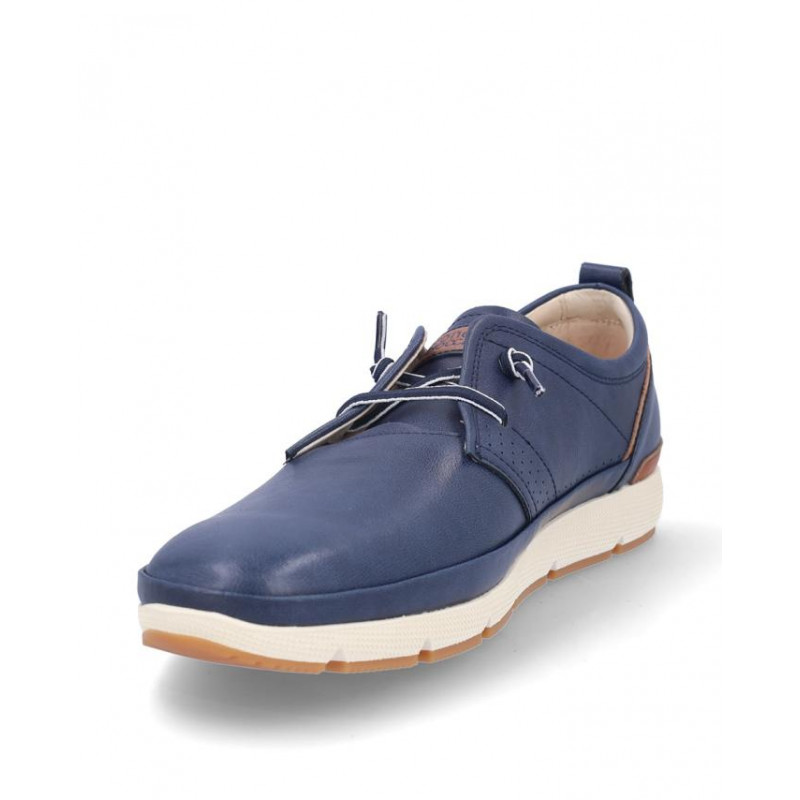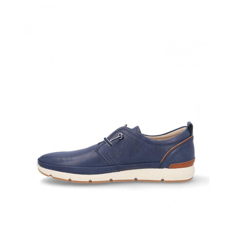 Zapato sport caballero Coronel Tapiocca fabricado en piel marino, cierre de cordones elásticos, forro piel y textil, plantilla extraible textil, suela ligera de 2,5 cm altura. Composición: Empeine: Piel. Forro: Piel y textil. Plantilla: Textil. Suela: eva + caucho. Componente principal: Piel