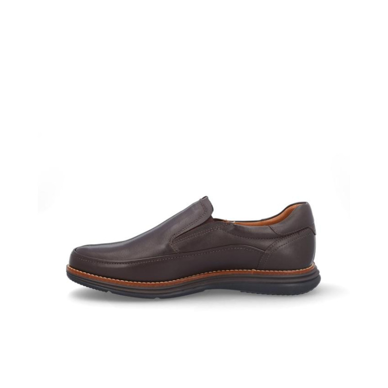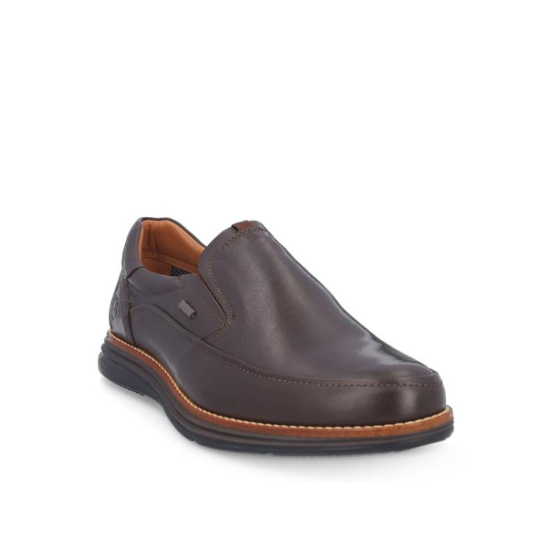 Mocasin de caballero Coronel Tapiocca en piel marron, con membrana resistente al agua y tecnología XDRY. Con elastico en los lados para facilitar la puesta y retirada. Forro textil con vista de piel, plantilla textil extraible termoconformada, suela de 3 cm altura, con vira melope pespunteada. Fabricado en España. Composición: Empeine: Piel . Forro: Piel/textil. Plantilla: Textil. Suela: Fibra sintetica. Componente principal: Piel