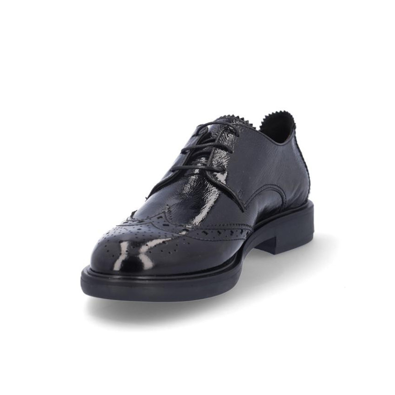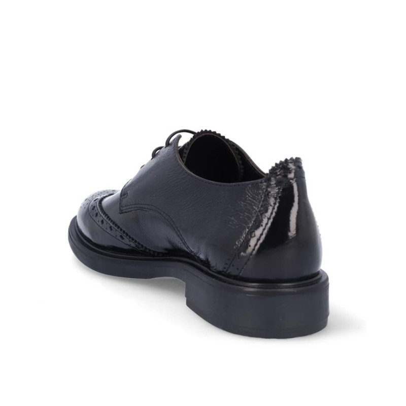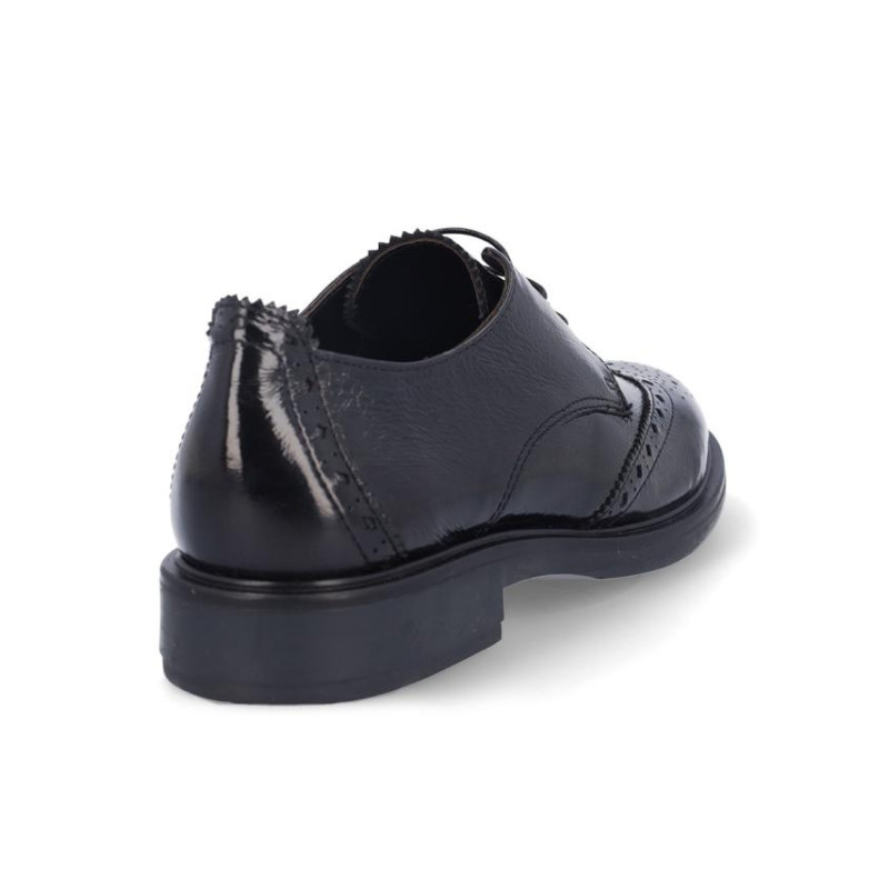Zapatos de señora Elio Berhanyer fabricados en piel charol color negro, cierre con cordones para mejor ajuste. Forro combinado piel y textil, plantilla de piel, suela con tacon de 3 cm y plataforma de 1'5 cm altura. Composición: Empeine: Piel. Forro: Piel/textil. Plantilla: Piel. Suela: Fibra sintetica. Componente principal: Piel