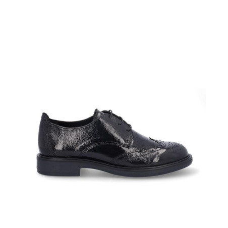 Zapatos de señora Elio Berhanyer fabricados en piel charol color negro, cierre con cordones para mejor ajuste. Forro combinado piel y textil, plantilla de piel, suela con tacon de 3 cm y plataforma de 1'5 cm altura. Composición: Empeine: Piel. Forro: Piel/textil. Plantilla: Piel. Suela: Fibra sintetica. Componente principal: Piel