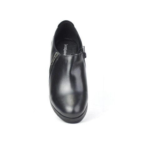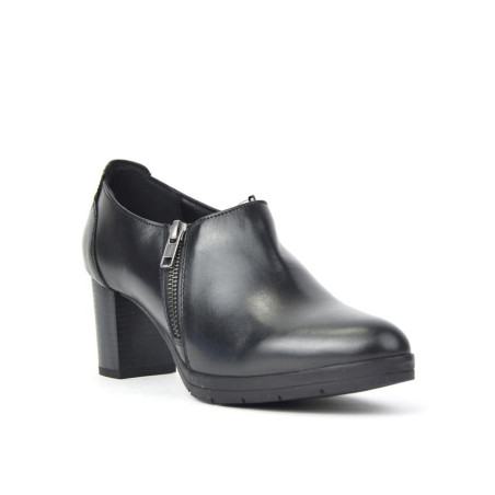 Señora zapato tacón alto de Javier Larrainzar fabricado en piel negro, cremallera exterior, forro de piel y textil, plantilla de piel, suela con tacón alto de 6.5 cm y 1.5 cm de plataforma. Composición: Empeine: Piel. Forro: Piel y Textil. Plantilla: Piel. Suela: Fibra sintética. Componente principal: Piel.