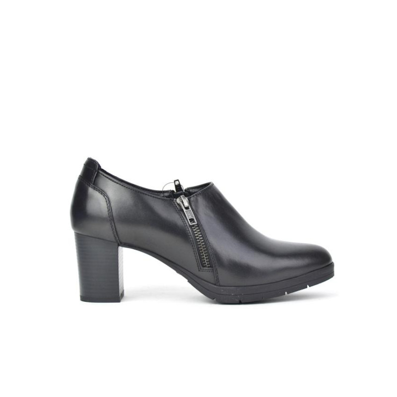 Señora zapato tacón alto de Javier Larrainzar fabricado en piel negro, cremallera exterior, forro de piel y textil, plantilla de piel, suela con tacón alto de 6.5 cm y 1.5 cm de plataforma. Composición: Empeine: Piel. Forro: Piel y Textil. Plantilla: Piel. Suela: Fibra sintética. Componente principal: Piel.