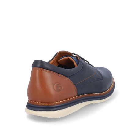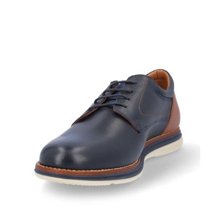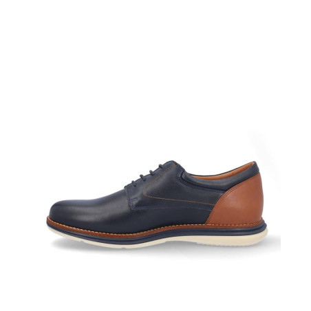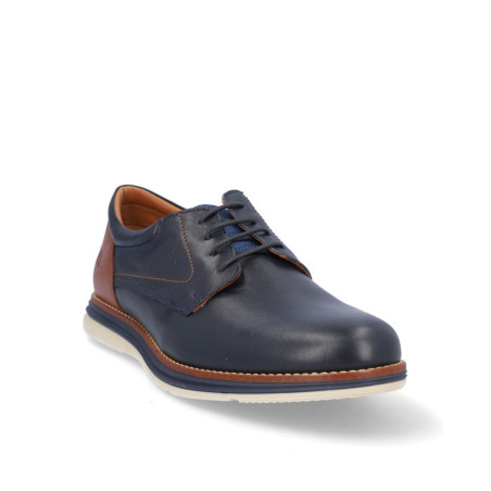 Zapatos caballero Coronel Tapiocca fabricados en piel marino y cuero. Cierre de cordones, forro textil con vista de piel, plantilla extraible de textil termoconformada, suela de 2,5 cm altura. Fabricados en España.Composición: Empeine: Piel. Forro y plantilla: Textil. Suela: Fibra sintética. Componente principal: Piel.