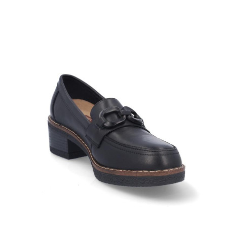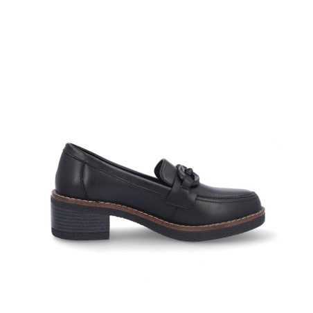Zapatos de señora Nature fabricados en piel color negro, adorno metalico en parte delantera. Forro textil, plantilla textil, suela con tacon de 5 cm y plataforma de 2 cm altura. Composición: Empeine: Piel. Forro: Textil. Plantilla: Textil. Suela: Fibra sintetica. Componente principal: Piel