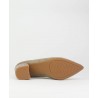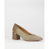Salon en ante taupe. Detalle en talon y tacon en coco piel taupe. Filo dorado en tacon.