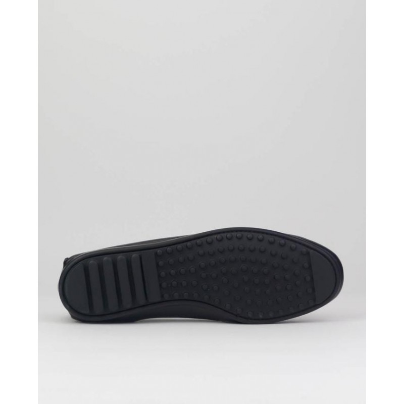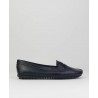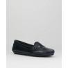 Mocasin Lepori en piel natural azul. Fabricado de forma artesana, cosido a mano, en Italia, este mocasin tiene como detalle de adorno un antifaz en el copete.